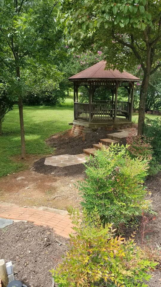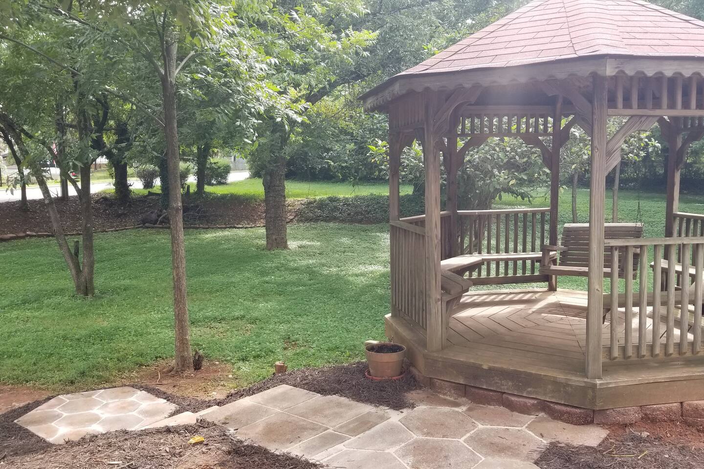 Quiet residential Neighborhood . Our home is on a large lot with mature trees and a Gazebo that is next to a Beautiful church. Troutman Park is a 5 minute walk and features: Grass Ball Fields, Nature trails, 9 hole, Disc golf course, Pavilion, Picnic tables, Playground, restrooms and walking trails. There is no fee to enter the park but fee is required to reserve ball fields and facilities. Several VERY good restaurants within walking distance (Randy's BBQ, Pelligrino's, Julia's Talley House).